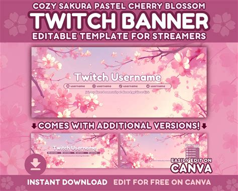 Twitch Banner Template | Cozy Sakura Pastel Editable Customizable Twitch Stream Header Banner For Canva - Cherry Blossom Cute Kawaii Sakura