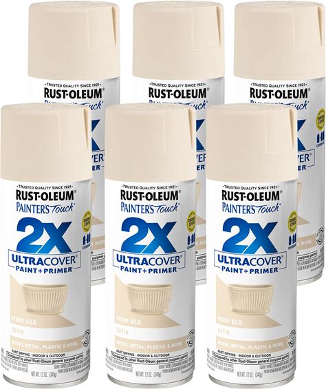 Rust-Oleum 334073-6PK Painter's Touch 2X Ultra Cover Spray Paint, 12 Oz, Satin Ivory Silk, 6 Pack