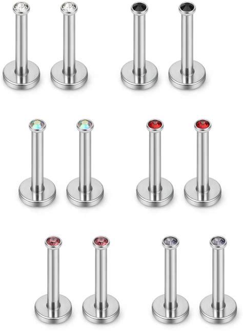 Ruifan 2-4mm Mix Color Round CZ Gem Internally Threaded Labret Monroe Lip Ring Tragus Nail Helix Earring Stud Barbell Piercing Jewelry Bar 6-10mm 16G