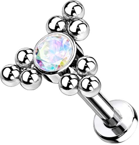 Pierced Owl - 16G G23 Implant Grade Titanium Internally Threaded CZ Crystal Triple Ball Cluster Flat Back Labret Monroe Lip Cartilage Helix Conch Ear