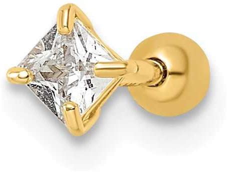 Womens 14K Yellow Gold 18 Gauge Square CZ Labret Stud