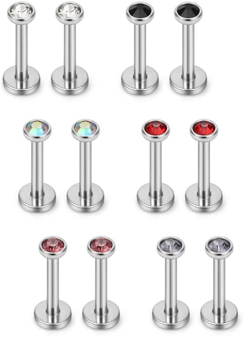 SCERRING 6 Pairs 14G Stainless Steel 3mm Prong Setting CZ Internally Threaded Labret Monroe Lip Tragus Cartilage Helix Earring Ring Body Piercing