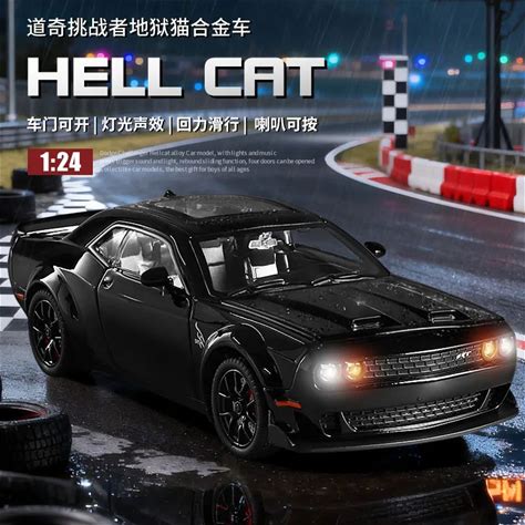 1: 24 Hellcat Alloy Sports Car Model, Regenerative Sound And Light Garage Model, American Muscle Car