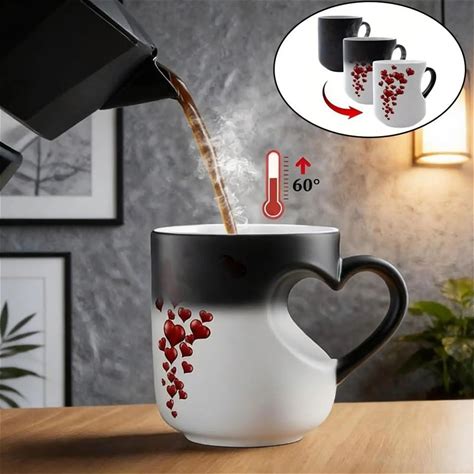 Heart-Shaped Color Changing Magic Ceramic Mug Funny Color Changing Coffee Cup Handle Surprise Filled