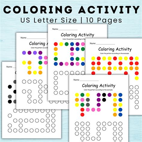 Color Pattern Activity Printable, Dot Coloring Worksheets For Kids, Visual Skills Activity, Autism Coloring, Special Education