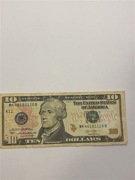 2013 Ten Dollar Bill Note ($10), Fancy Serial Number ( MK 40101110 B), FOUR 1'S