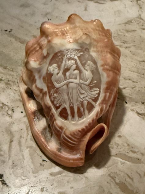 Large Vintage Carved Cameo Conch Shell Italian
