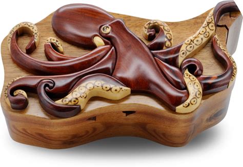 Wood Intarsia Octopus Puzzle Box - Secret Trinket Box Inside