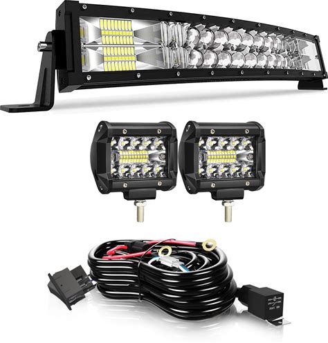 TERRAIN VISION LED Light Bar 22 Inch Curved Led Bar Off Road Light W/ 2Pcs 4in 60W LED Pods Fog Lights With Wiring Harness Kit For Trucks ATV UTV Boat