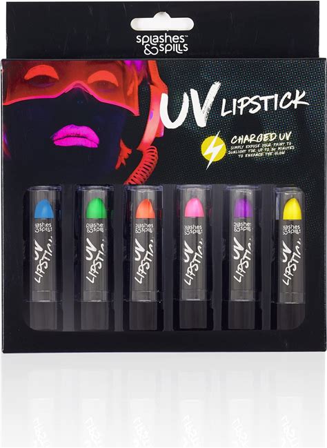 Splashes & Spills UV Blacklight Lipstick - 6 Color Variety Pack, 3.7G - Day Or Night Stage, Clubbing Or Costume Makeup