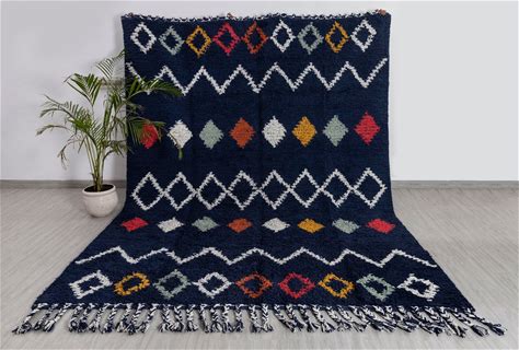 Blue Wool Moroccan Bohemian Chic Azizal Beni Ourain Berber Rug-MD-47