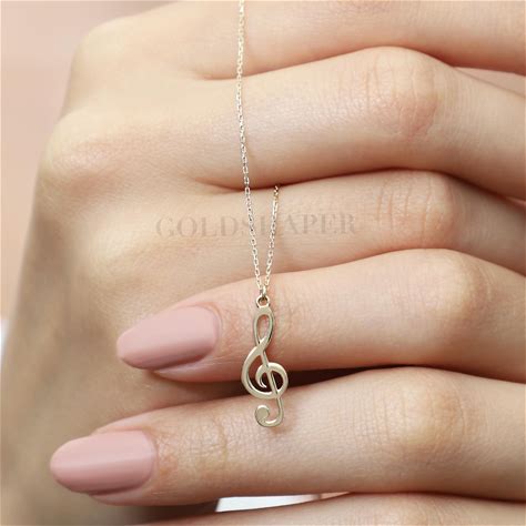 Music Note Necklace Treble Clef Jewelry Pendant Gold Silver Charm
