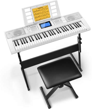 61 Key Digital Keyboard Piano Kit With Stand And Bench For Beginners In Black With Built-In Speakers