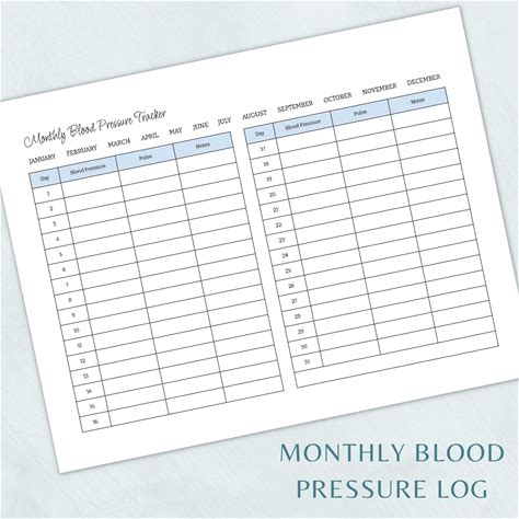 Pressure Log Sheet - Blood Pressure Log
