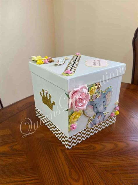 Card Box/ Elephant Baby Shower Themed Card Box/ Yellow And Pink Card Box/ Pop-Out Floral Decorations/ Nurising Room Decor.