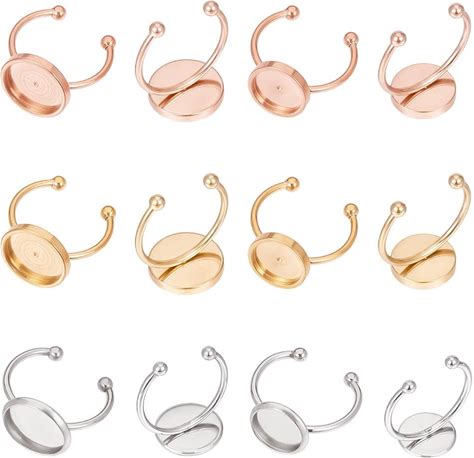 UNICRAFTALE 18Pcs DIY Cuff Ring Making Kit 1718mm Round Open Cuff Ring Bezel Tray 304 Stainless Steel Blank Dome Cabochon Rings Bases Metal Pad Rings