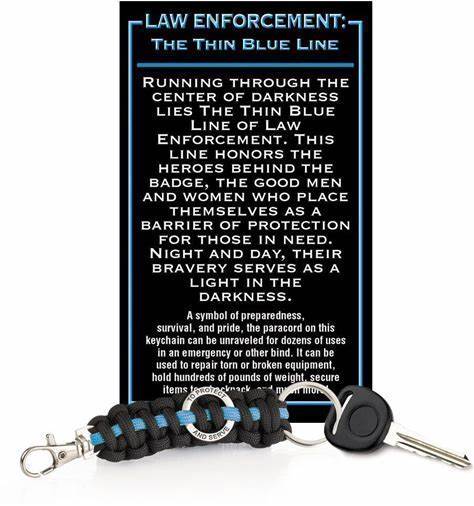 Positive Promotions Law Enforcement: The Thin Line Paracord Key Chain With Card, In Blue | Police Week Gifts