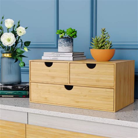 Ilworktls Bamboo Desk Organizer With 3 Drawers,Small Desktop Drawers,Tabletop Storage Box For Home Office