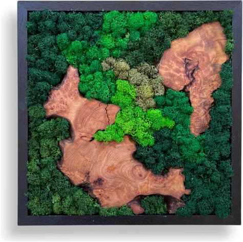 Serenzy 16" Square Cedar & Preserved Moss Wall Art | Unique No-Maintenance Decor For Home, Office, Restaurant, Diagonal Wood Pair