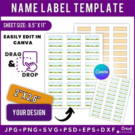 Name Label Template, Printable Name Tag, School Label Template, Blank Name Template, Name Label Svg, School Supply Name Labels, DIY Label