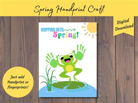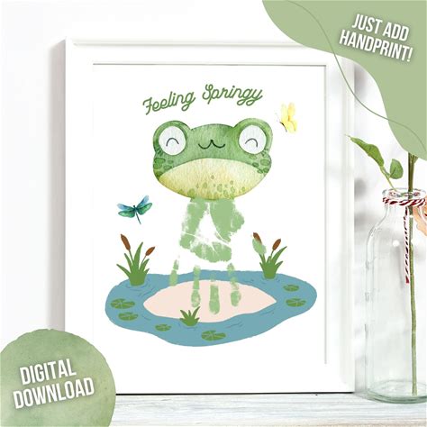 Printable Spring Handprint Art Frog, Personalized Craft Gift For Mom Grandma, Fingerprint Toddler Children Baby Keepsake, Kids Activities
