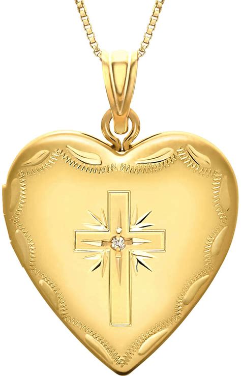 14K Gold Filled Cross Heart Photo Locket Necklace With Cz | Picturesongold