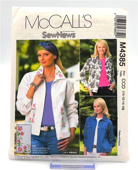Mccall's Sewnews M4385 Jean Jacket Sewing Pattern With Embroidery Design Uncut, Factory Folded