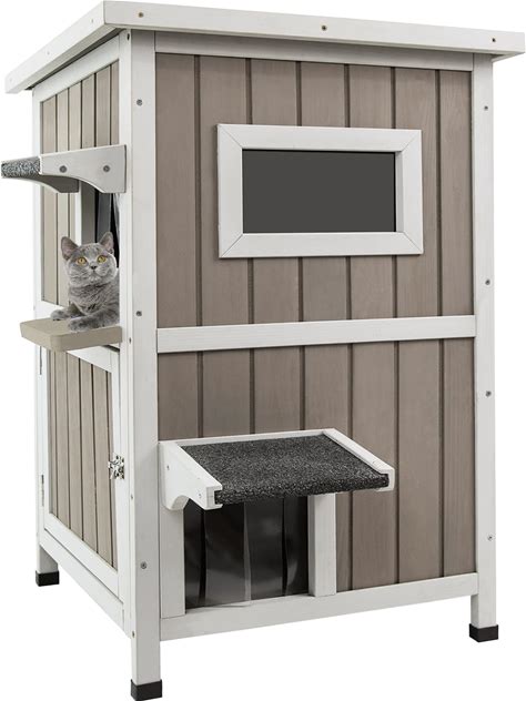Weatherproof Outdoor Cat Enclosure, Large Wooden Catios With 3 Platforms, Patio Cat Houses For Cats,