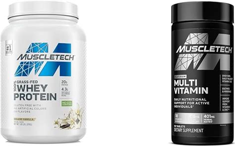 Muscletech Grass Fed Whey Protein Grass Fed Whey Protein Powder Protein Powder Platinum Multivitamin For Immune Support 18 Vitamins Minerals Vitamins A C D E B6 B12