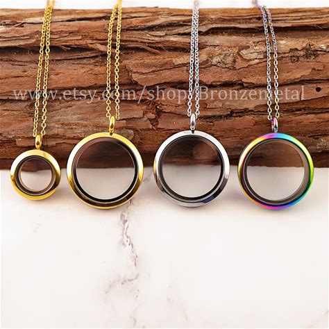 Stainless Steel Floating Memory Locket - Living Glass Locket Pendant - Rotate Open Threaded Swivel Round Clear Lockets Gold, Rose Gold