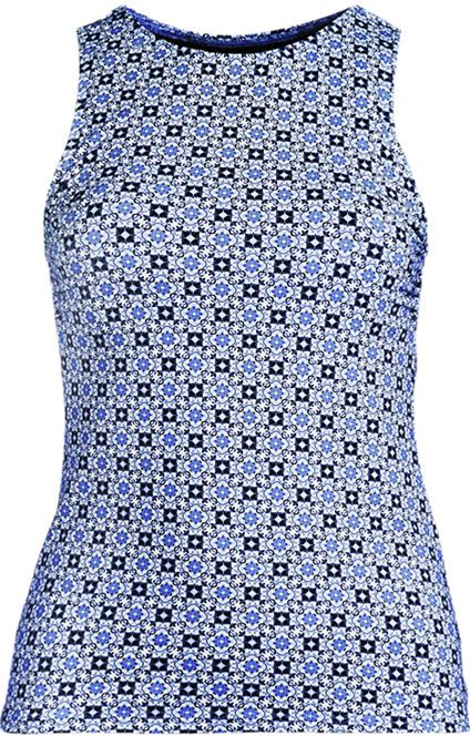 Women's Plus Size High Neck UPF 50 Sun Protection Modest Tankini Swimsuit Top - Lands' End - Blue - 16W