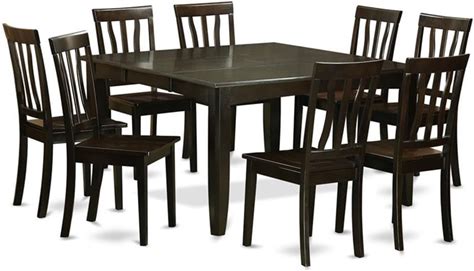 East West Furniture PFAN9-CAP-W 9 Piece Dining Room Table Set Includes A Square Kitchen Table With Butterfly Leaf And 8 Dining Chairs, 54X54 Inch,