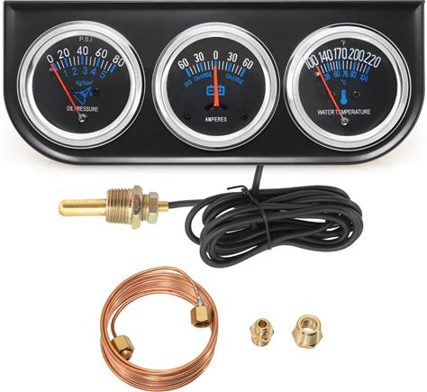 3 in 1 Triple Gauge Kit, Gauge Set Automotive, Car Meter Auto Gauge, Temp Gauge Temperature Oil Pressure Gauge Sensor 51mm Size (Oil: 0-100 PSI, Water