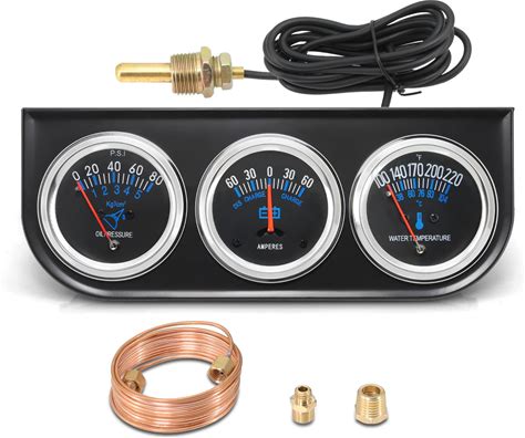 MH 2Inch 52mm Triple Gauge Set, Oil Pressure Gauge Water Temp Temperature Ammeter AMP Car Auto 3 Gauges Cluster Set Kit