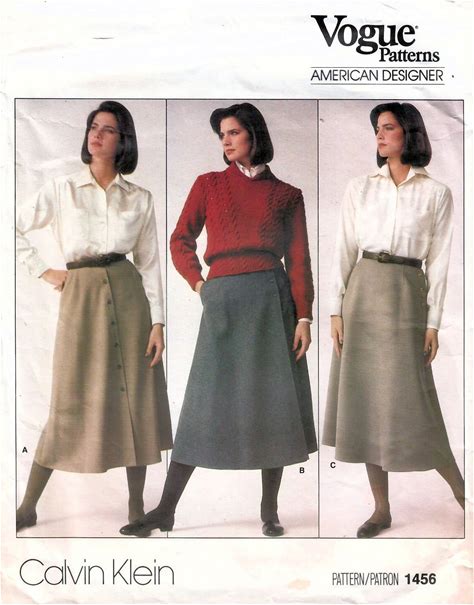1980S Vogue 1456 Vintage Sewing Pattern Designer Calvin Klein Misses Midi Skirt Size 10 Waist 25