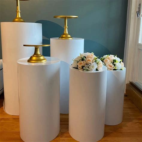 US Delivery 3/5Pcs White Cylinder Table Pedestal Stand Decor Cake Plinths Pillars Backdrop For Party