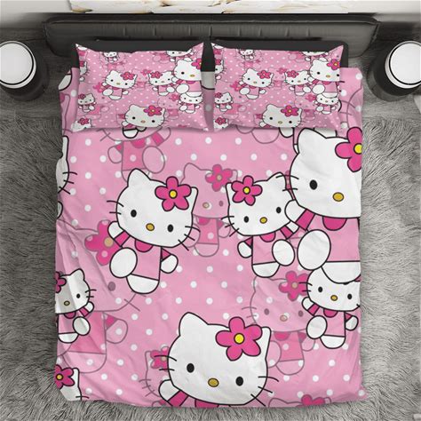 Hello Kitty Love 3D Twin Bedding Set - Black & White Cartoon Comforter - Cute Bedroom Decor For Fans