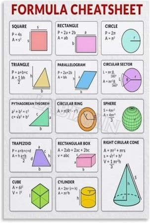 Formula Cheatsheet Poster Math Education Wall Art For Living Room Bedroom Aesthetics Decor