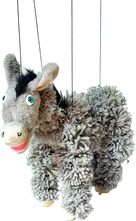 Artisan Owl Donkey Marionette Puppet - Yarn Donkey With Wooden Feet, Detachable Strings