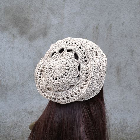 Crochet Pattern Hat Beanie Summer Flower Hat Boho Headwear Pattern DIY Lace Crochet Hat Woman Beanie Pattern
