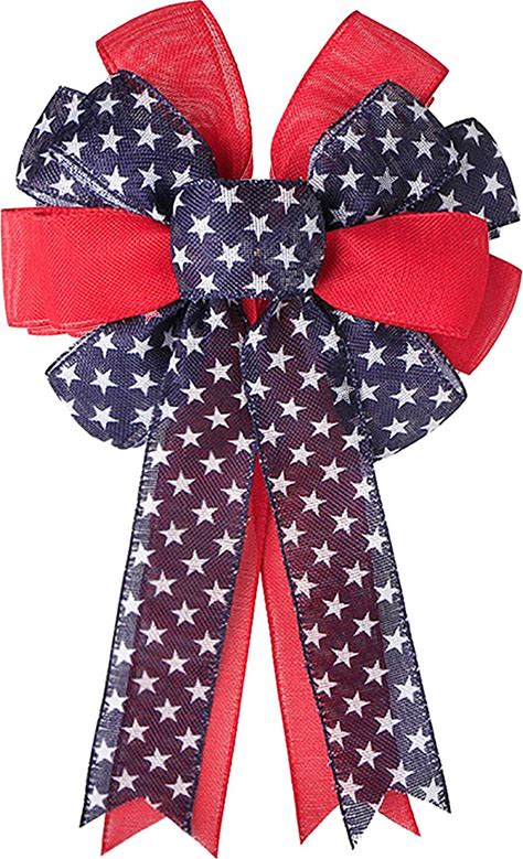 Samanter Large Red Blue Stars Bow Burlap Bow Patriotic Wreath Bow Pary Tree Topper For Memorial Day 4th Of July Independence Day Indoor Outdoor
