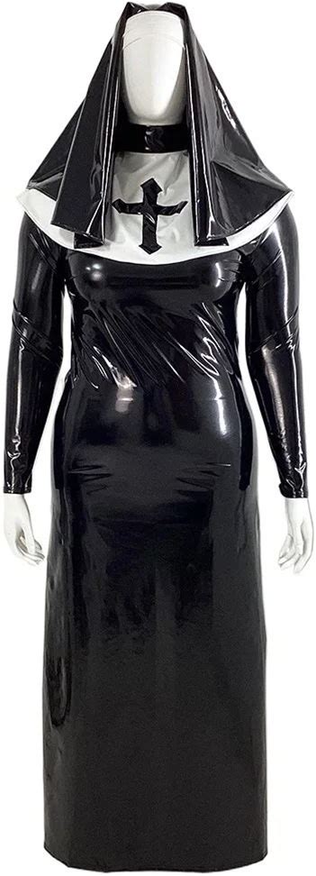 Plus Size Wetlook PVC Leather Long Pencil Dress Nun Outfits Exotic Party Cosplay Nun Uniforms Unisex