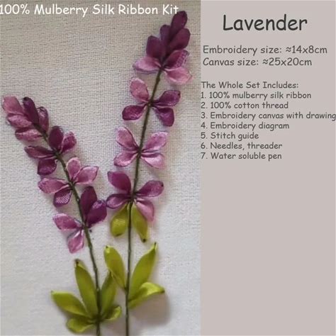Mulberry Silk Ribbon Embroidery Kit Set Vintage Lavender Flower DIY Needlework Flowers For Beginners