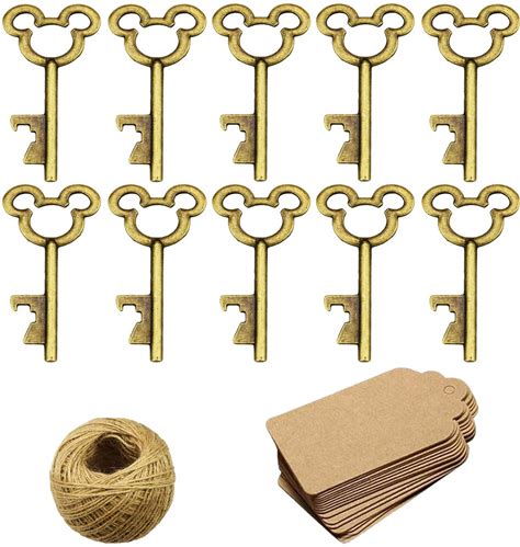 XONOR 50Pcs Vintage Skeleton Key Bottle Openers With 50Pcs Escort Card Tag And Twine For Wedding Party Favors Rustic Decoration (Bronze)