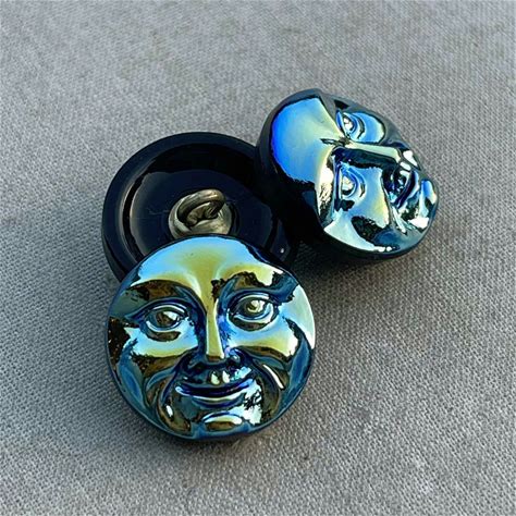 Blue AB Moon Czech Glass Button, Scarabee Button, Moon Face Glass Button, 18mm Czech Button, 18mm Button, 1 Pc, Dry Gulch, Scarabee Pyrite