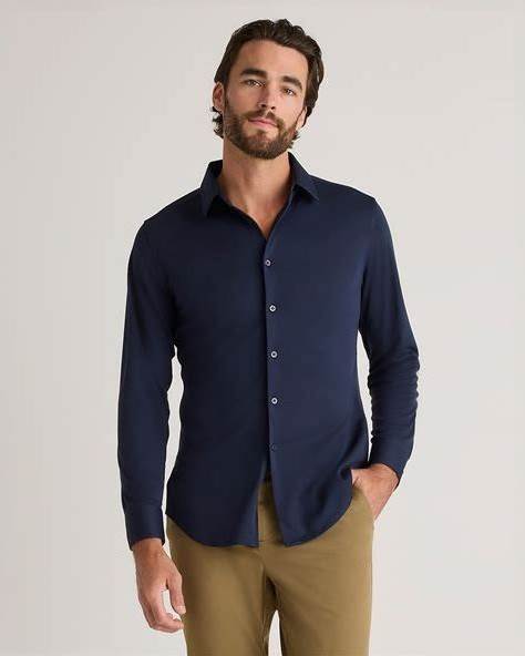 Men's Commuter Stretch Pique Long Sleeve Button Down In White, Size Medium, 100% Polyester By Quince