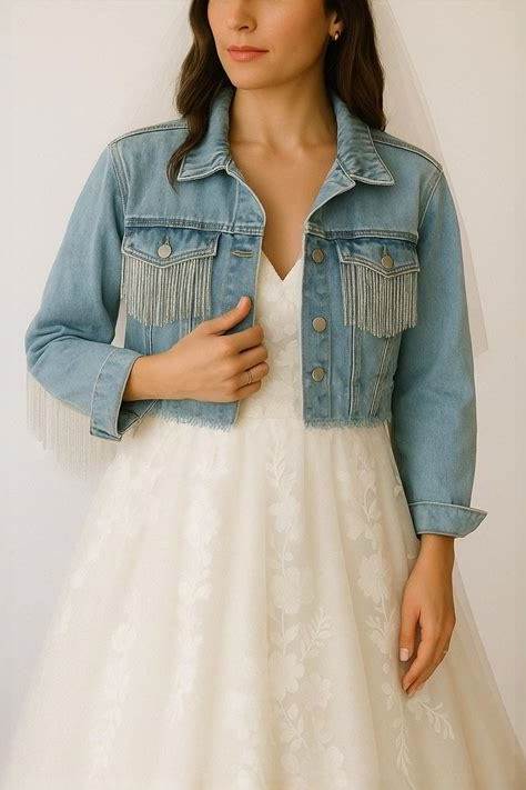 Blue Fringe Custom Mrs. Last Name Jean Jacket, Bridal Denim Jacket, Custom Jean Jacket, Personalized Denim Jacket Gifts, Wedding Jean Jacket
