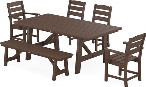 POLYWOOD EDGE 6-Piece Rustic Farmhouse Dining Set With Bench In Kona - Outdoor Furniture