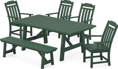 POLYWOOD Prairie 6-Piece Rustic Farmhouse Dining Set With Bench In Green - Outdoor Furniture