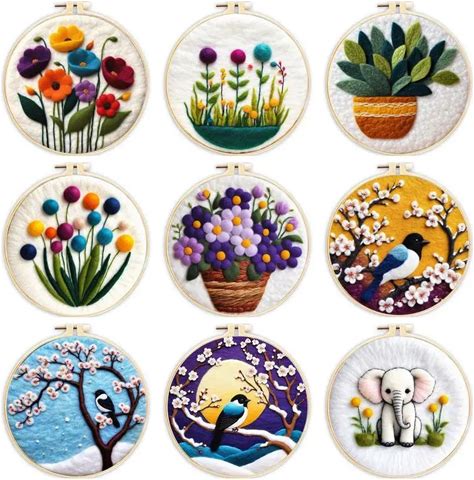 1 Pack Flowers Bird Pattern Diy Needle Felting Kit With Embroidery Hoop Wool Needle Felt Painting